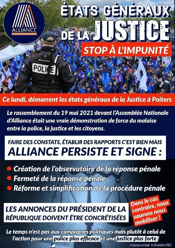 États Généraux de la JUSTICE : STOP à l'impunité Le rassemblement du 19 mai 2021 devant l'Assemblée Nationale d'ALLIANCE était une vraie démonstration de force du malaise entre la Police, la Justice et les citoyens. Publication : 18 octobre 2021 Lire la suite... Bureau National